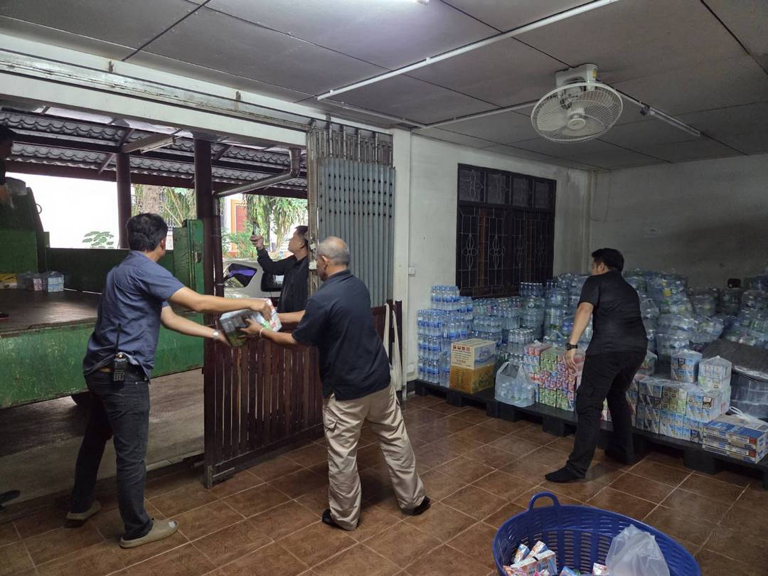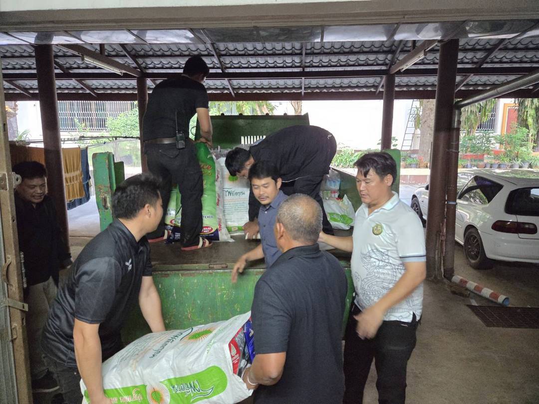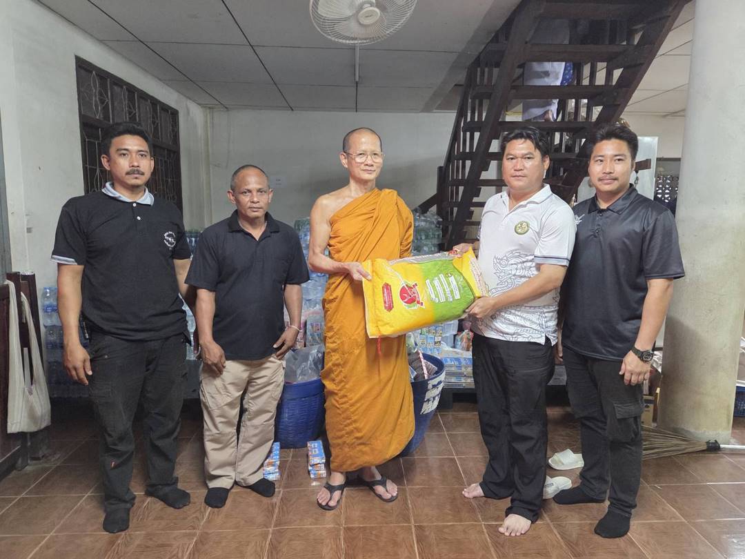 พระครูวิลาศกาญจนธรรม, ดร. เจ้าอาวาสวัดท่าขนุน ที่ปรึกษาเจ้าคณะจังหวัดกาญจนบุรี ประธานชุมชนคุณธรรมต้นแบบวัดท่าขนุน ประธานหน่วยอบรมประชาชนประจำตำบลท่าขนุน ประธานสภาวัฒนธรรมอำเภอทองผาภูมิ มอบข้าวสารอาหารแห้งและน้ำดื่มแก่นายศราวุธ ศรีทันดร นายกเทศมนตรีตำบลทองผาภูมิ จำนวน ๑ คันรถหกล้อ ร่วมโครงการ "ชาวทองผาภูมิปันน้ำใจช่วยน้ำท่วมปักษ์ใต้" ณ คลังพัสดุวัดท่าขนุน หมู่ที่ ๑ ตำบลท่าขนุน อำเภอทองผาภูมิ จังหวัดกาญจนบุรี